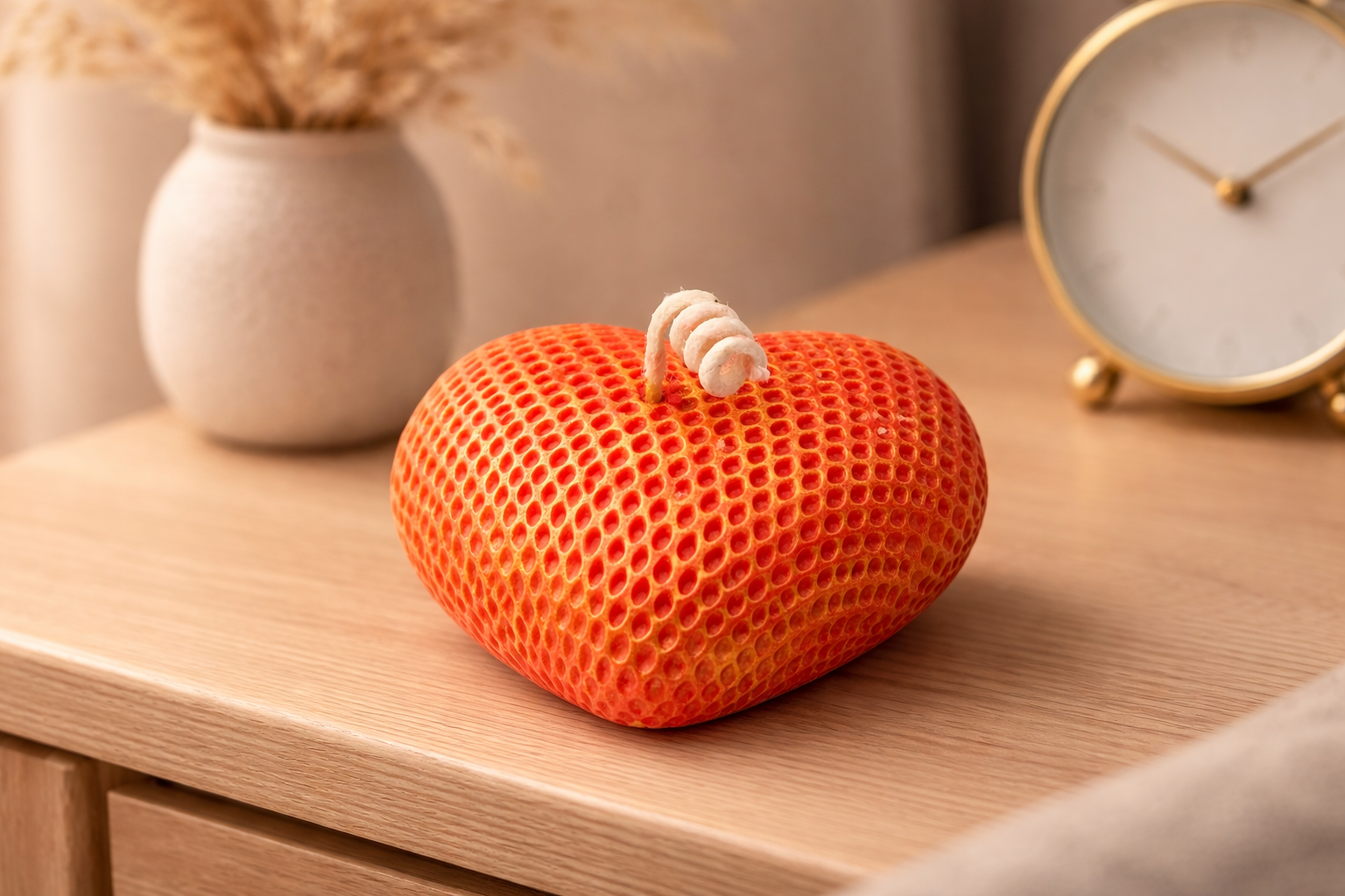 Coulée à la main dans notre atelier à partir de cire végétale de colza, sans paraffine, chaque pièce présente de légères variations qui soulignent son caractère artisanal. À poser sur une table de nuit, une étagère ou une console, elle diffuse une ambiance douce et chaleureuse.