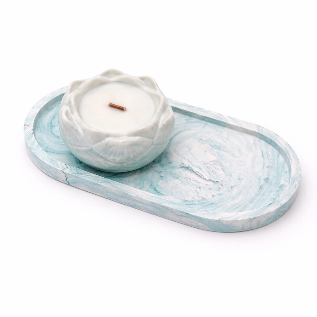 Plateau Ovale en Jesmonite – Édition artisanale- vert