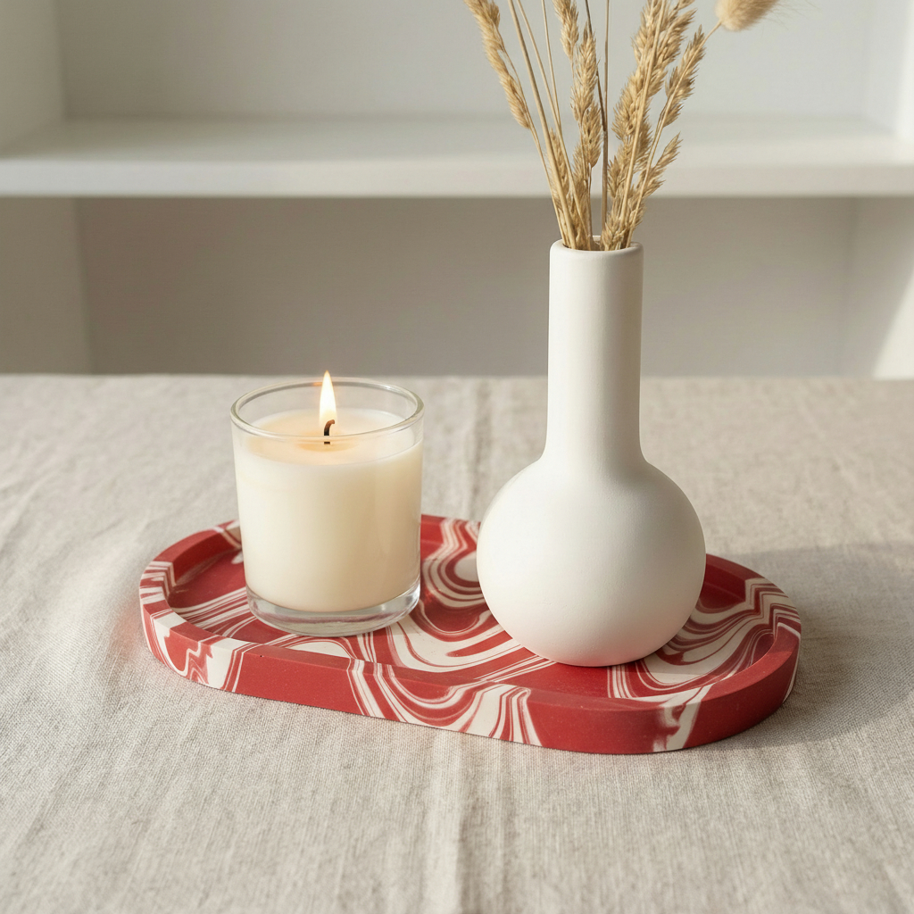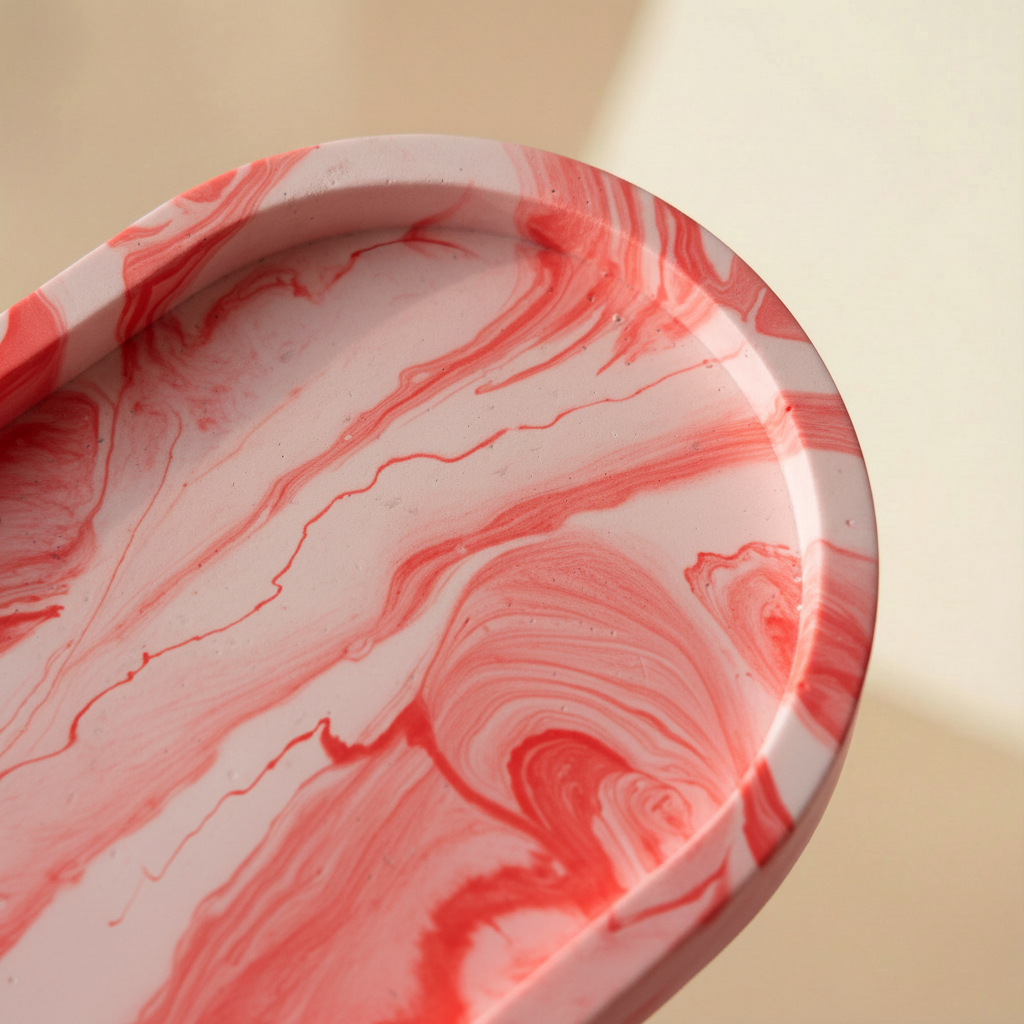 Plateau Ovale en Jesmonite – Édition artisanale- Rouge