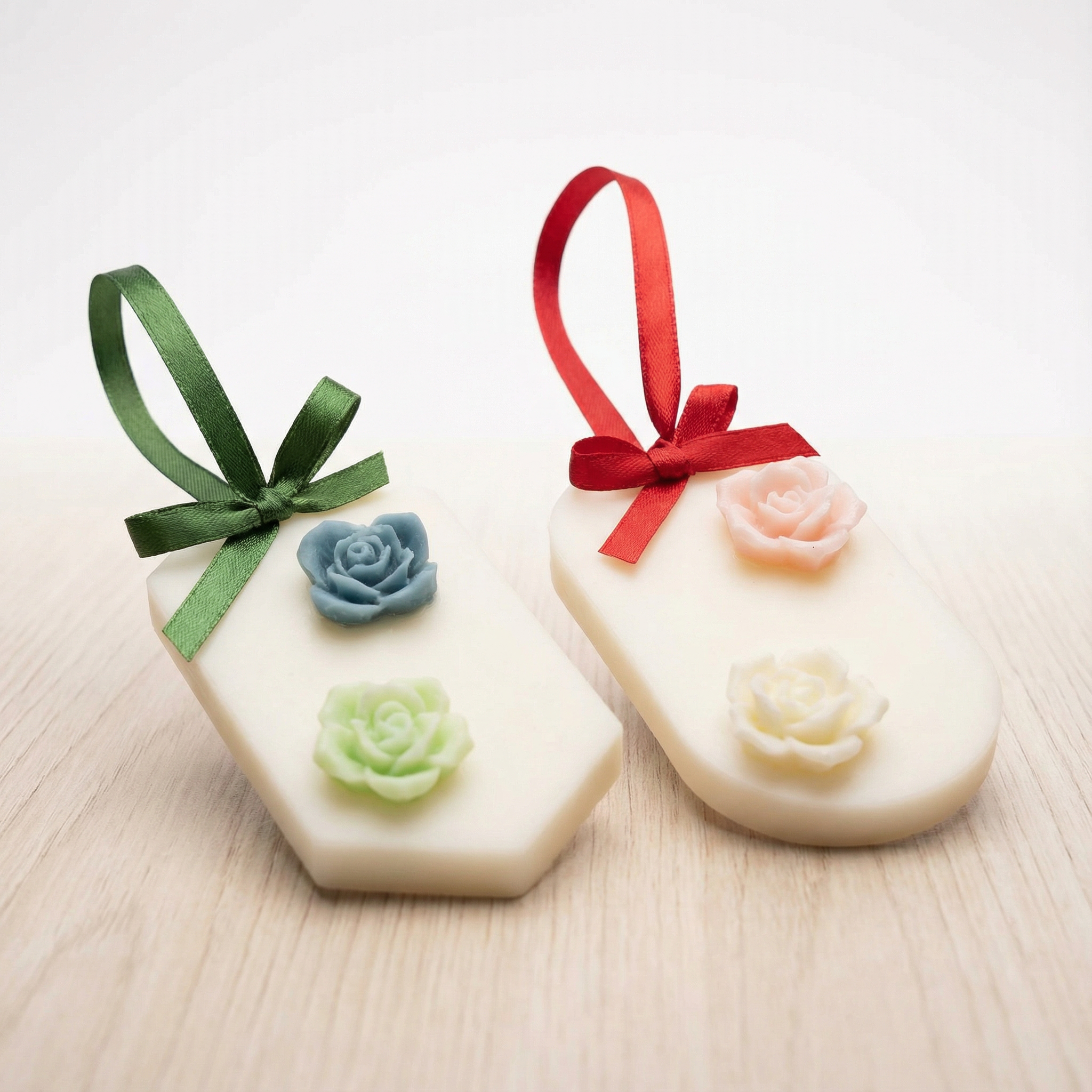 Suspension parfumée réalisée à la main en cire végétale. Discrète et élégante, elle est idéale pour parfumer une armoire, une poignée de porte ou un petit espace de la maison. Chaque pièce est unique et fabriquée artisanalement en Savoie.