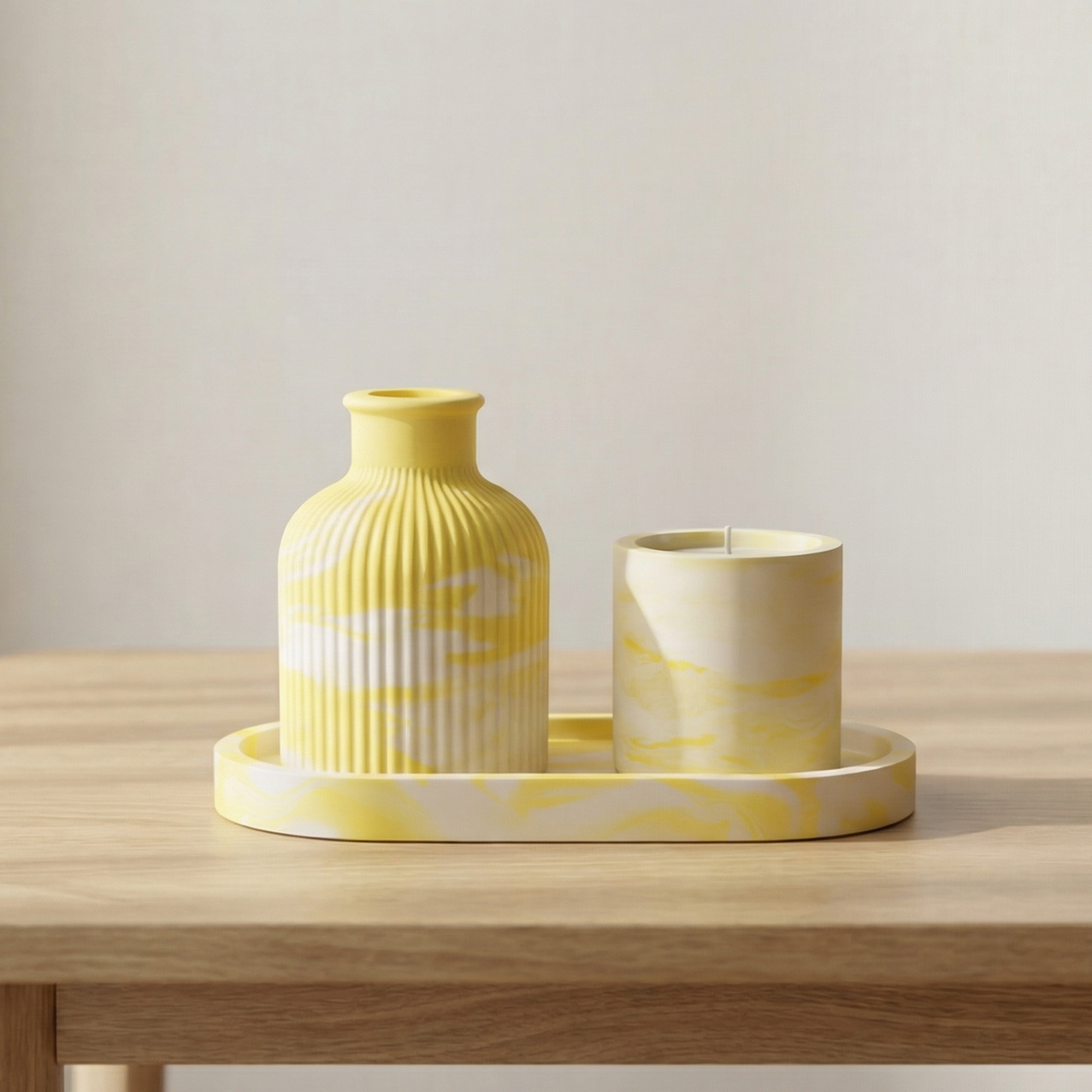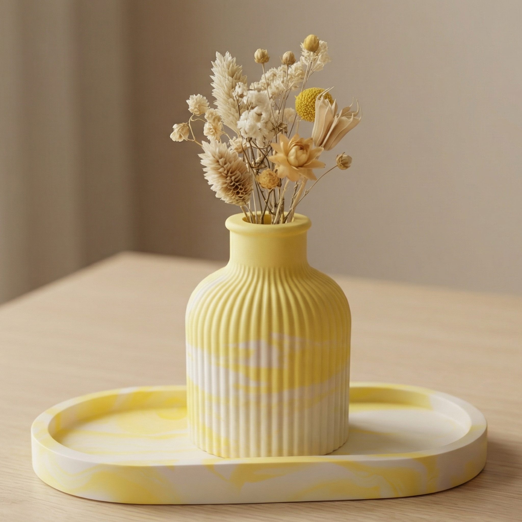 Vase cannelé jaune- jesmonite